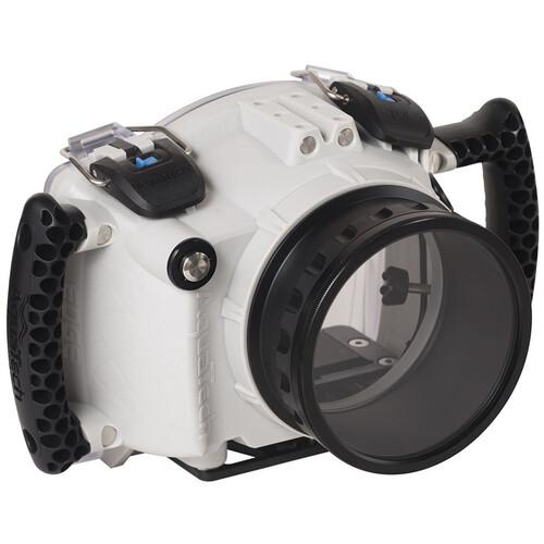 Enjoy underwater shooting with your camera using the AquaTech EDGE BASE Sports Housing for FujiFilm X-T4 - Grey. This camera housing is made with glass-filled polycarbonate with stainless steel and anodised aluminum controls, allowing you to shoot as deep as 33 feet. This housing measures 200mm W x 170mm H x 115mm depth.