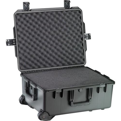 The Pelican iM2720 Storm Trak Case with Foam (Black) is an injection-molded case made of HPX high performance resin that is virtually unbreakable, dent-resistant and shatter-resistant. It is tough, rugged, lightweight, airtight and watertight. There is a permanently attached Vortex valve that automatically adjusts air pressure without letting in water, and that won't unscrew from the case. Press & Pull latches open with the push of a button, yet stay closed securely under impact or stress. The case has unbreakable molded-in hasps to allow the addition of standard size padlocks. It also has hinges with integrated feet that hold fast under impact, and create a flat surface for upright stability. It has three double-layered, soft-grip, solid-core handles; a lightweight, retractable, telescoping handle and rugged in-line wheels for easy transport.