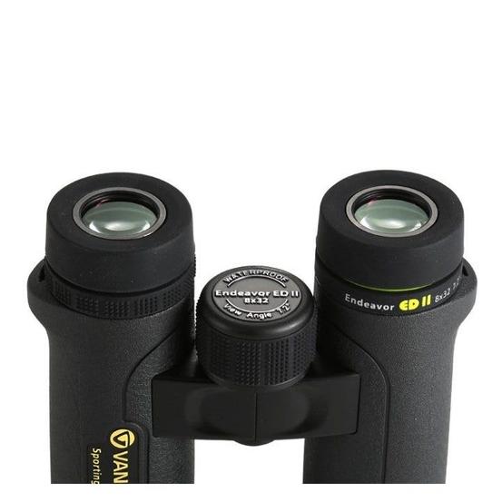 The Vanguard Endeavor ED II 8x32 Binoculars offers the latest Vanguard optical technology enhancements including premium Japanese ED (Extra-low Dispersion) glass with edge-to-edge clarity that enhances light transmission. An open-bridge design helps to reduce weight without sacrificing strength, and provides a large surface area to hold, even with the compact body. Pebbled rubber armoring helps to give protection from drops and impacts while helping to provide a non-slip grip. Designed for durability, the lightweight magnesium-alloy housing is nitrogen-filled and o-ring sealed for water and fogproof performance, and the 3-stage click-stop twist-up eyecups provide a custom-fit eye relief for use with or without eye-wear.