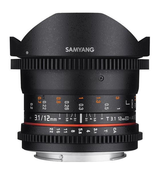 Samyang Optics 12mm T3.1 VDSLR ED AS NCS Fish-eye is a manual focus fisheye VDSLR cine lens designed for full frame sensor sizes.