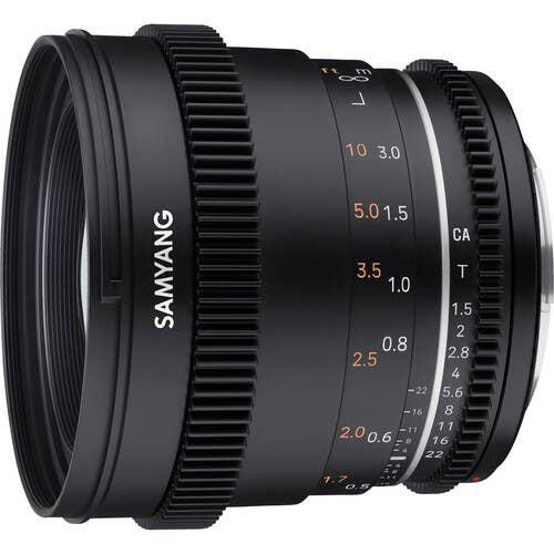 Update your cinema lens set with thisSamyang 50mm T1.5 MK2 VDSLR Canon EF Full Frame that comes in a Canon EF mount. The VDSLR MK2 continues the line with the same multilayer coating process, industry-standard geared focus and iris rings, and fast T1.5 aperture, and it adds a 9-blade iris for beautiful soft bokeh, weather sealing to keep the moisture out, and focal lengths on both sides for added versatility for focus pullers.