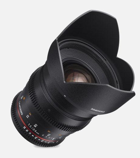 Samyang Optics 24mm T1.5 VDSLR ED AS IF UMC II is a wide angle manual focus cine lens designed for full frame sensor sizes.
