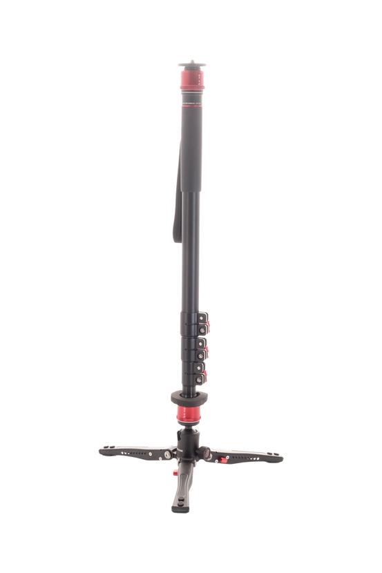 The CB3 A180F features a swiveling, folding base that adds stability and makes it easy to follow a subject while capturing video. Fold the legs up to expose the rubber foot and use the monopod without the swiveling base. The base is removable and converts to a mini tripod for macro or tabletop photography. It features the same quick disconnect collar system as the monopod, and has a locking knob to adjust the swivel angle.