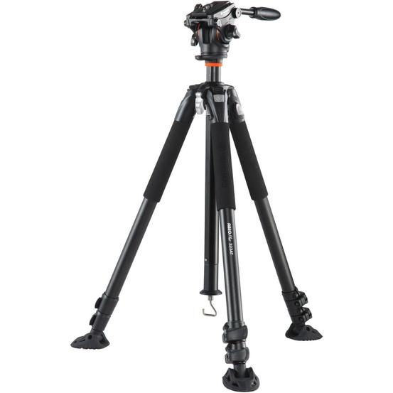 The rubber feet on the legs have an angled design for solid grip on floors and flat earth and built-in threaded spikes give you support on soft earth or ice. An included set of snow/sand shoes offer stability on sand, snow or other soft ground. Thick foam on the upper part of each leg makes the tripod easy and comfortable to handle in cold or wet weather and a stabilizer hook extends from the bottom of center column to add weight for further stability.