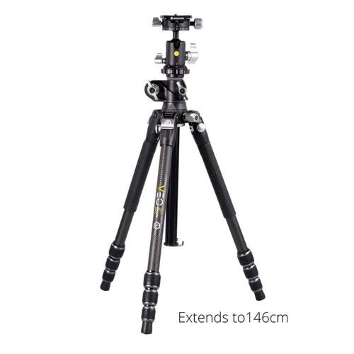 The Vanguard VEO 3T+ 234CB Travel Carbon Fibre Tripod Kit is a versatile 4-section leg tripod, which is perfect for supporting full-featured digital camera gear in everyday settings and travel. Despite a compact and portable build, this tripod and its included ball and socket head can hold a huge maximum load of 10KG. Ideal for finding the best support for each situation, this Vanguard tripod converts to a monopod, features 3 separate leg angles, and also includes a multi-angle central column, which moves 360-degrees in any direction.
